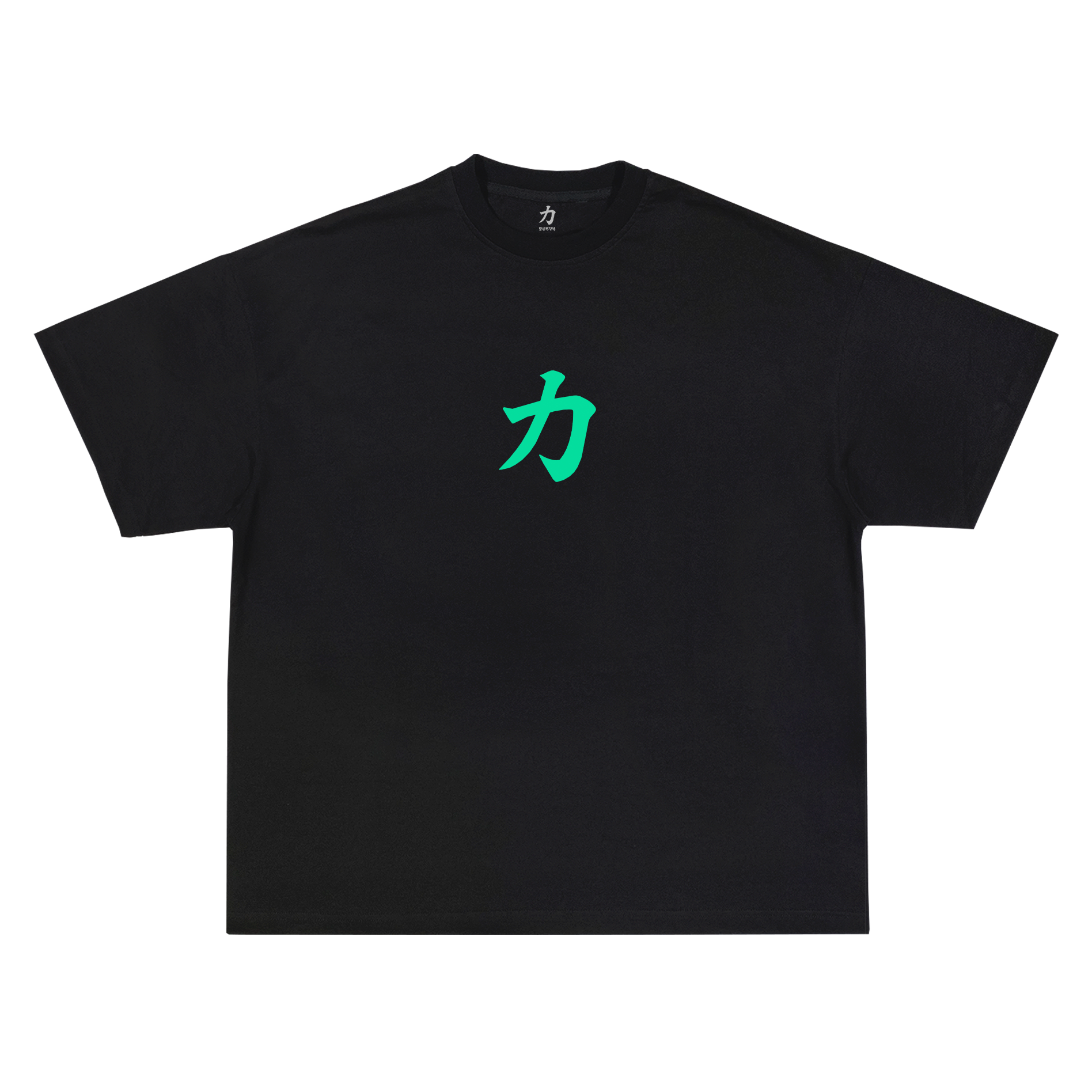 Kanji-Logo, blaugrün, Siebdruckgrafik auf der Vorderseite